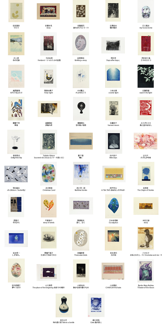 「リトルクリスマス - 小さな版画」展 も10年目を迎え、最後の展覧会となりました。 国内外で活躍する版画家47名の最後の作品を全国の37カ所の美術館、画廊と共に展示いたします。大切な方へのクリスマスプレゼントに、 そしてご自身のための一枚としてお選びいただければ幸です。 |